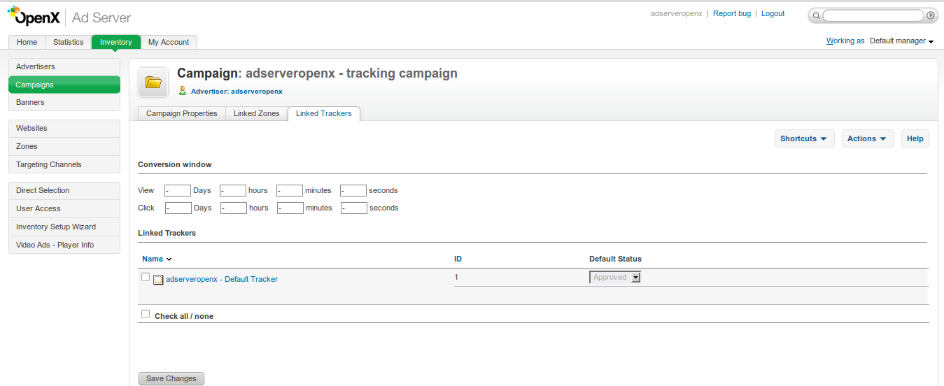 Check the check box “Enable Conversion Tracking” was enable or not in our OpenX . And you need to set the